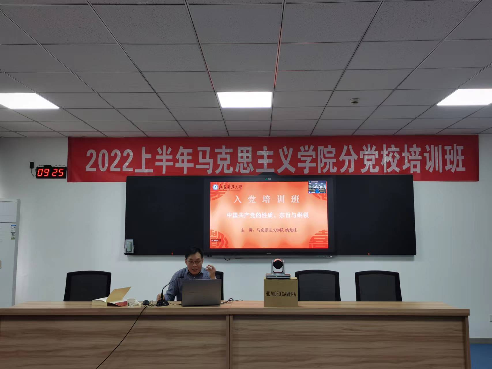 姚允柱教授以“中国共产党的性质、宗旨和纲领”为主题,深入浅出地讲述了政党、无产阶级等概念的由来及历史演变,指出中国共产党的领导地位是历史的选择、人民的选择,希望同学们不忘党的宗旨,牢记使命,为走好新时代长征路贡献自己的青春力量。