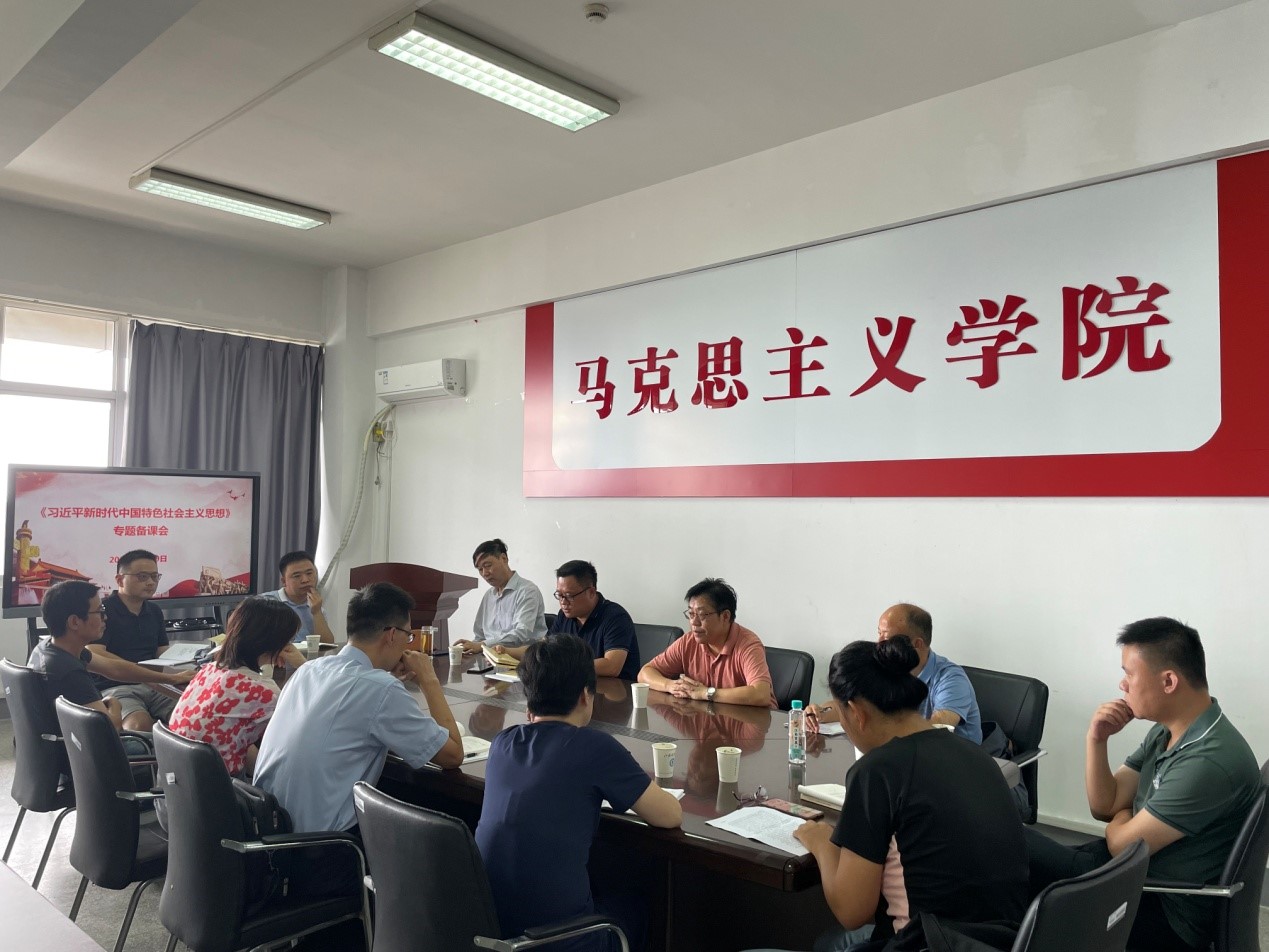 8月29日,mile米乐集团官网举行《习近平新时代中国特色社会主义思想概论》专题备课会,就如何上好《习近平新时代中国特色社会主义思想概论》这一课程进行讨论和研究。会议由学院党总支书记郭昭昭主持,院长洪波、副院长阚为、学院督导组组长姚允柱教授及部分思政教师参加。