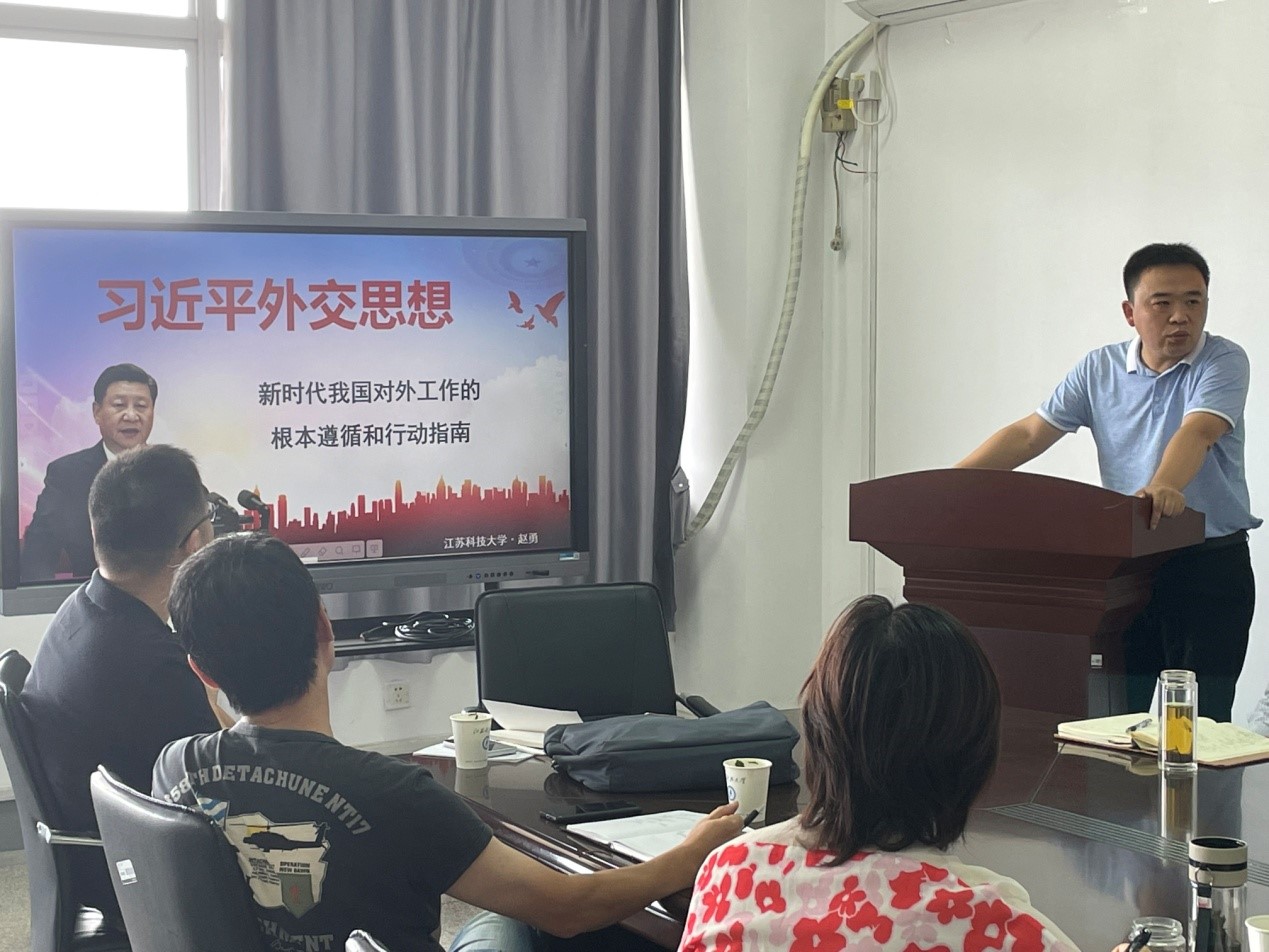 郭昭昭书记指出,学好并且上好《习近平新时代中国特色社会主义思想概论》这一课程,对于学院思政课老师打造学院特色,营造学院品牌具有重要意义。随后,各教研室依次对最近的学习和备课进行汇报。戴中璧老师从习近平法治思想出发,提出习近平新时代中国特色社会主义思想法治思想是人类法治文明最新的创造性思想,是对其他思想的继承与超越。李晓乐老师从坚持总体国家安全观的内容进行分享交流,李树文老师从习近平生态文明思想对自己的备课方向进行了阐释。赵勇老师则对习近平外交思想进行深入讨论,提出如何抓住每一个纲要中的重点部分等问题,引发现场热烈讨论。